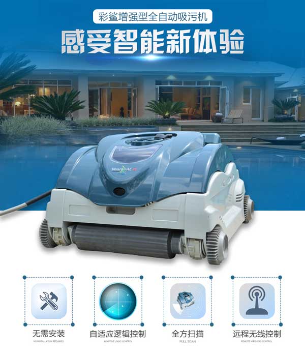 彩鯊游泳池吸污機是泳池吸污設備中游泳池清潔中受大家認可的設備之一,增強型這一款適合大型游泳池使用。